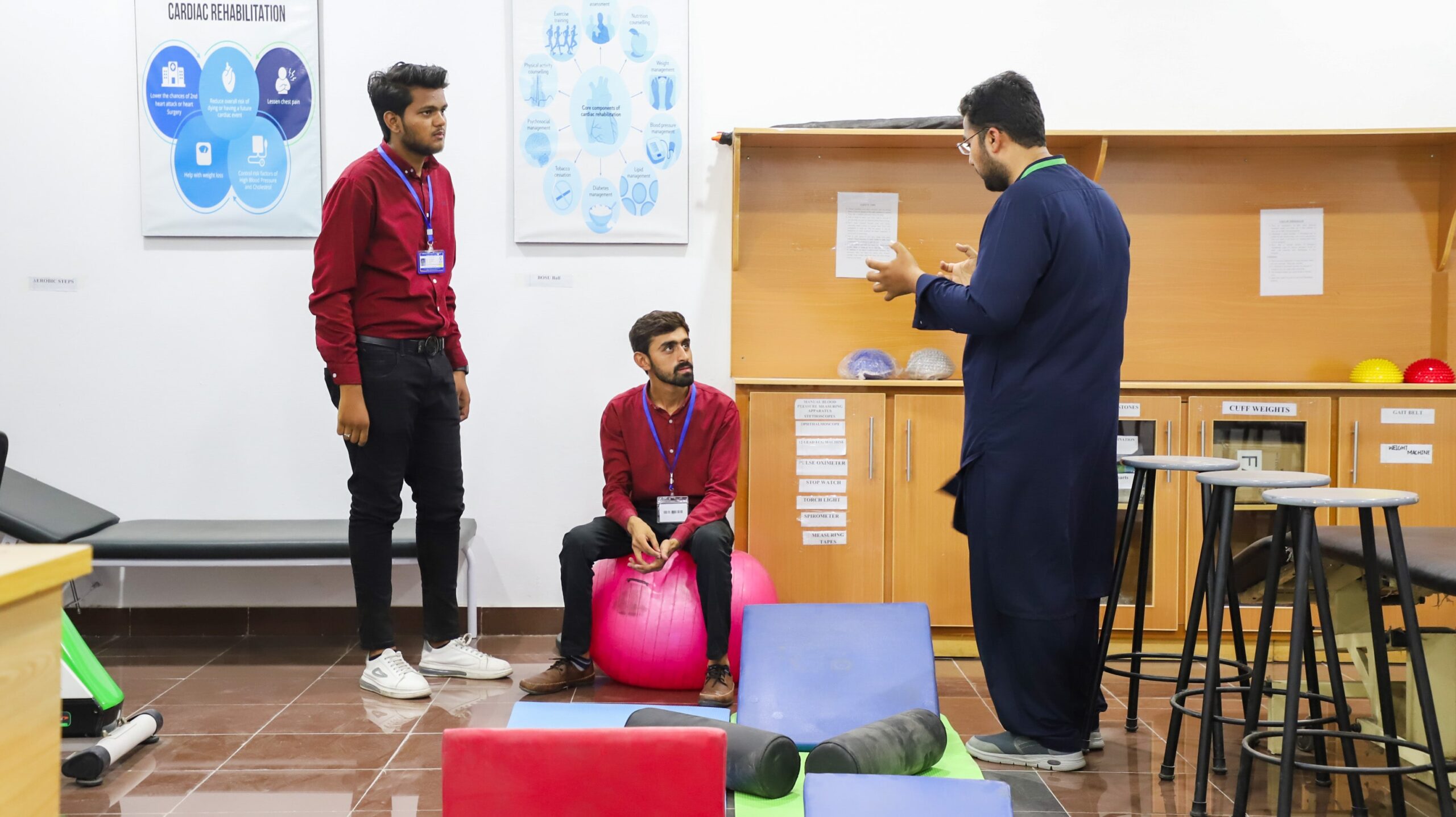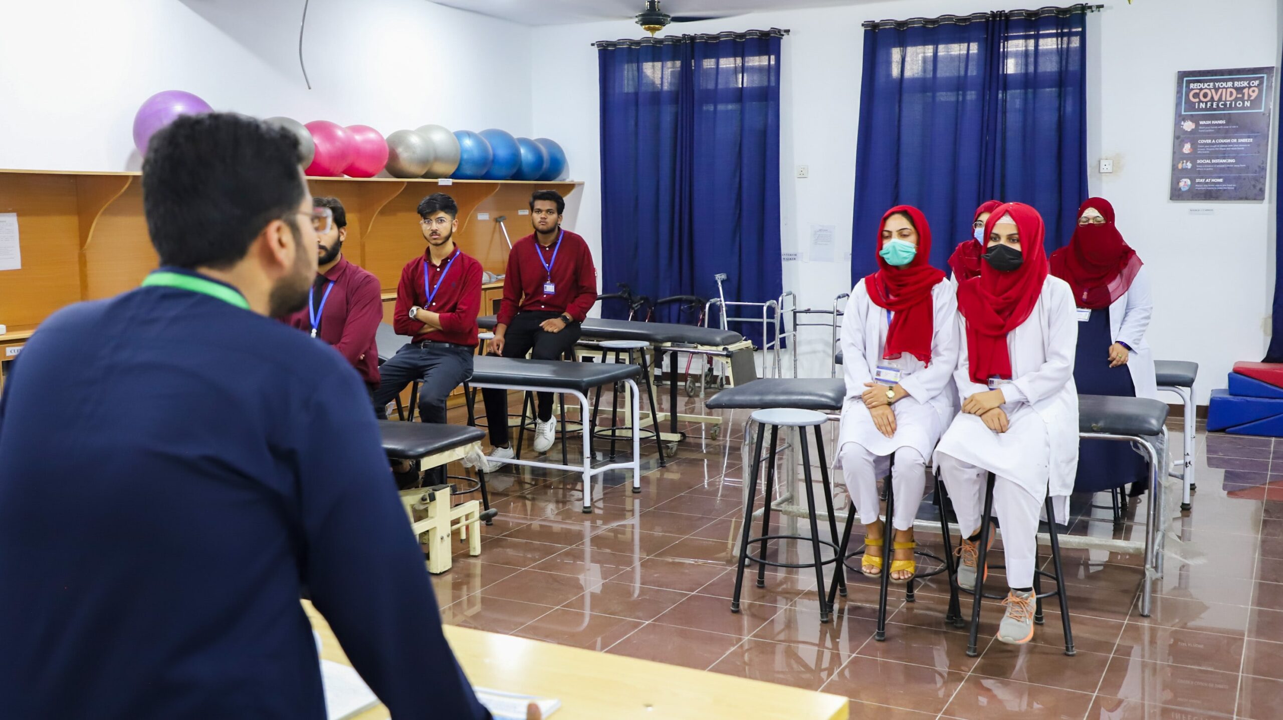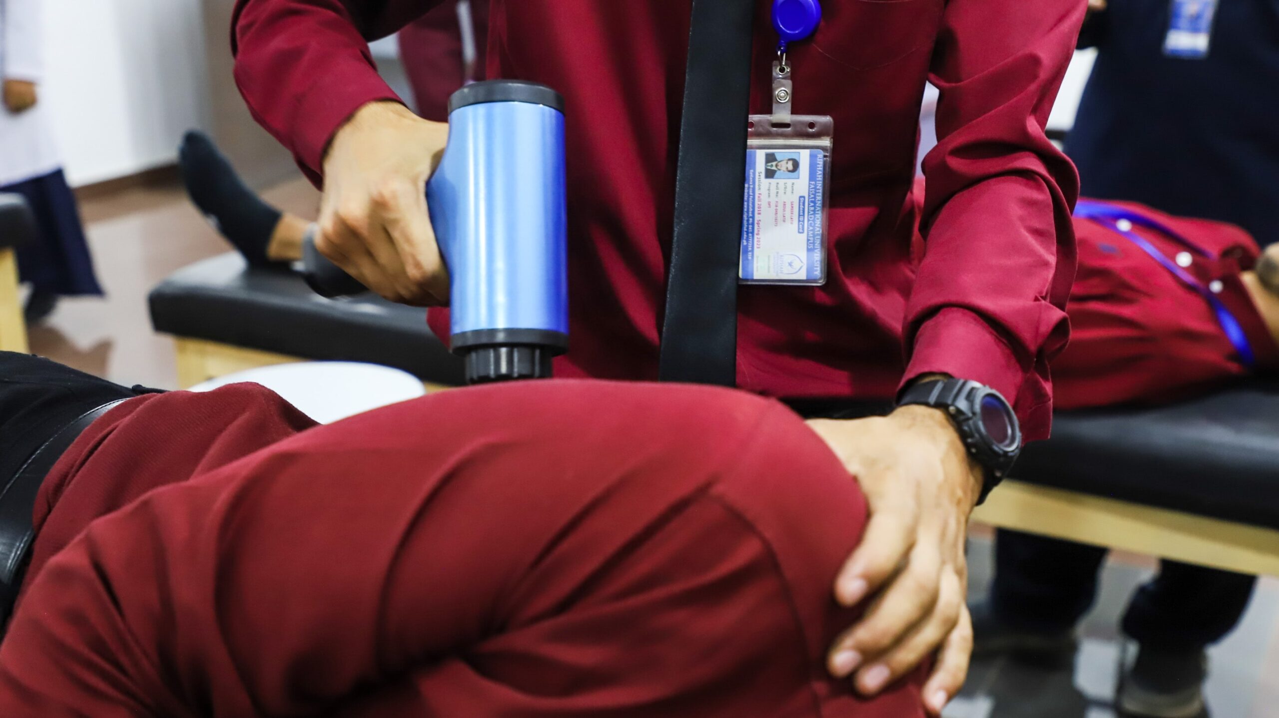 The Riphah Doctor of Physical Therapy Lab provides structured, hands-on training that transforms theoretical learning into clinical competencies. Students practice musculoskeletal assessment, posture and gait analysis, manual therapy, and therapeutic exercise prescription under faculty supervision and defined SOPs. Emphasis is placed on patient safety, ethical practice, and accurate clinical documentation using standard assessment forms. Scheduled practicals cover joint mobilization, electrotherapy modalities, rehabilitation protocols, and safe handling techniques with simulated patients. Guided sessions help students build confidence in treatment planning, dosage progression, and evidence-based rehabilitation strategies. The lab environment fosters professionalism, teamwork, and reflective practice through role-play, peer learning, and case-based simulations. By combining structured pedagogy with supervised application, the lab prepares graduates for clinical internships, licensing exams, and entry-level professional roles in physical therapy and rehabilitation sciences.