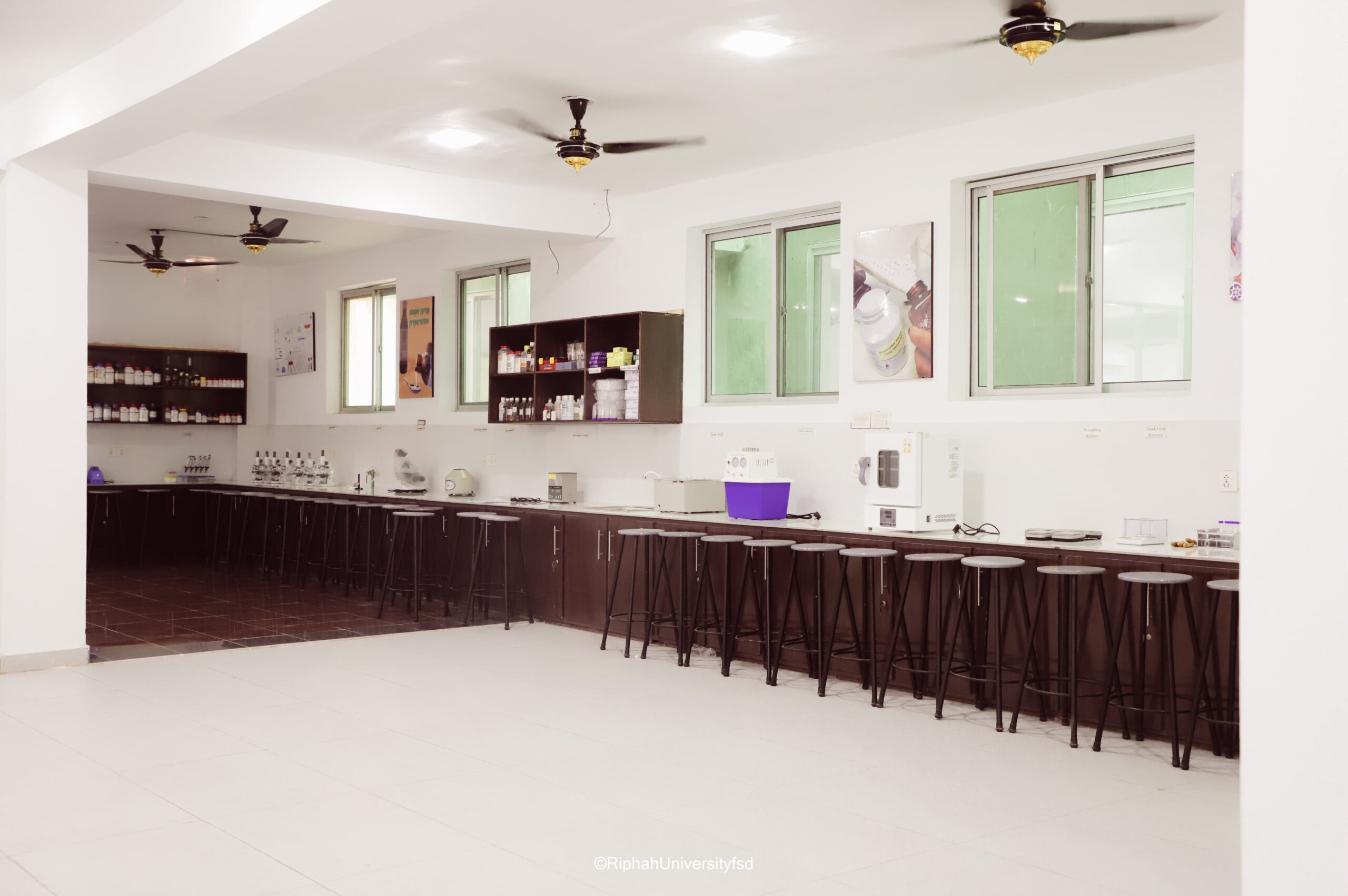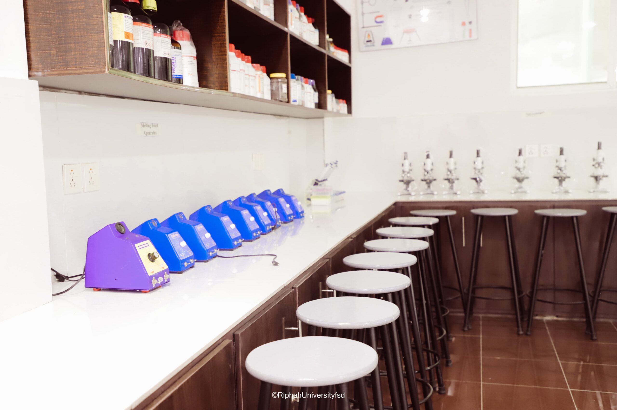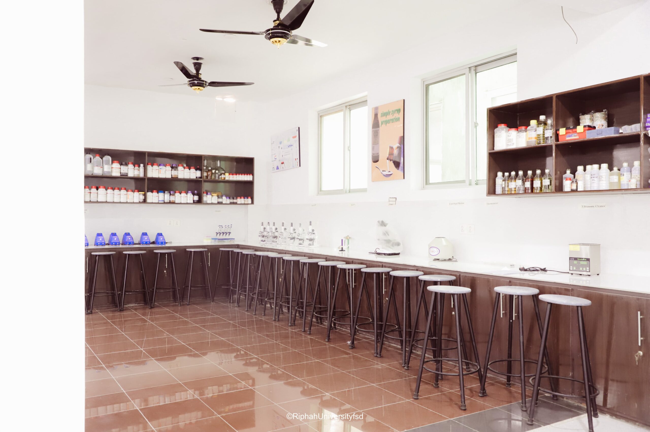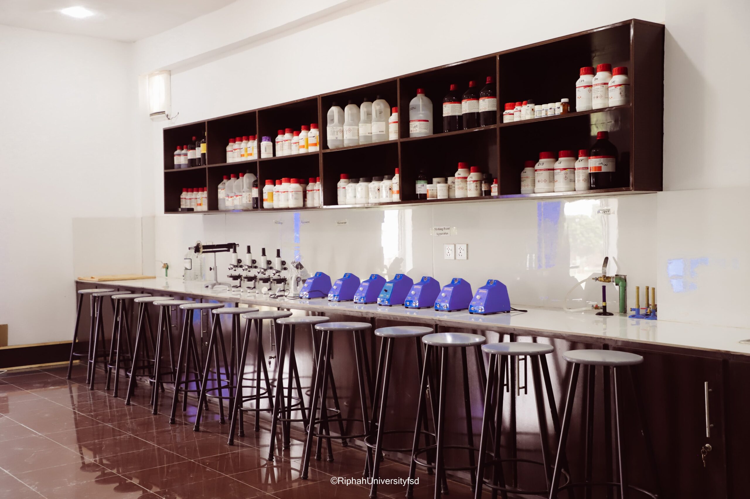 The Riphah Pharmacy Laboratory Block provides structured, practice-oriented sessions that integrate pharmaceutical sciences with applied skills. Students engage in pharmaceutics, pharmacology, pharmacognosy, and medicinal chemistry practicals under faculty supervision and standardized SOPs. Emphasis is placed on safety, precision in pharmaceutical calculations, and Good Laboratory Practices to ensure accuracy and reliability. Scheduled practicals cover dosage form preparation, compounding, dissolution and disintegration testing, crude drug microscopy, and basic quality control methods. Guided sessions introduce prescription handling, dispensing workflows, and simulated patient counseling to reinforce ethics, communication, and error prevention. The lab environment encourages inquiry, teamwork, and reflective practice through mini-projects and problem-solving tasks. By combining structured training with supervised practice, the block equips graduates with professional skills for internships, industry roles, and entry-level practice in pharmacy and health sciences.